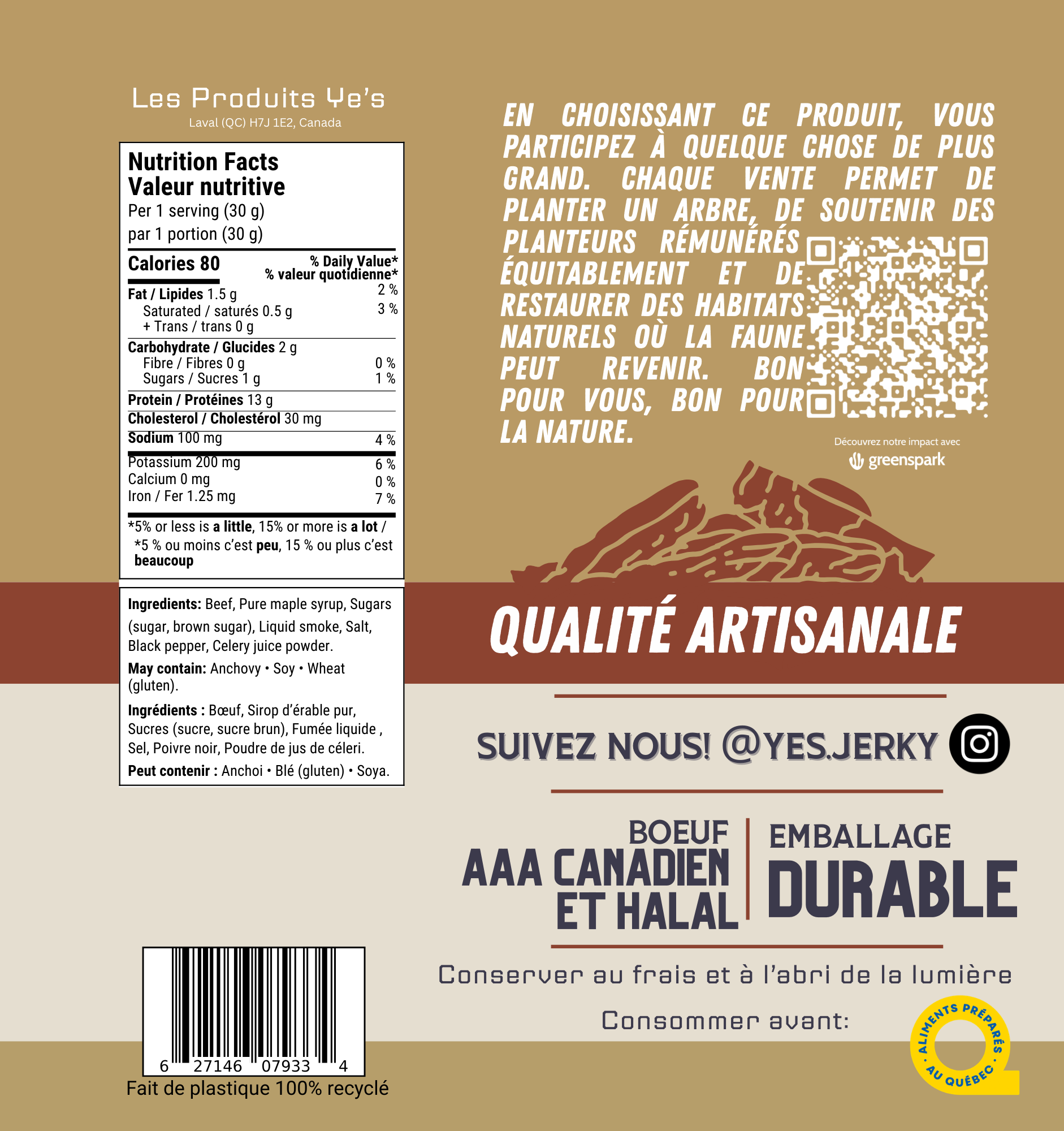 Inspired by our hometown’s vibrant food scene, Style Montréal blends smoky, peppery notes with a touch of sweetness that captures the spirit of the city. Each bite delivers 30 g of protein, lower sodium, and no preservatives, keeping you fueled and energized wherever your day takes you.